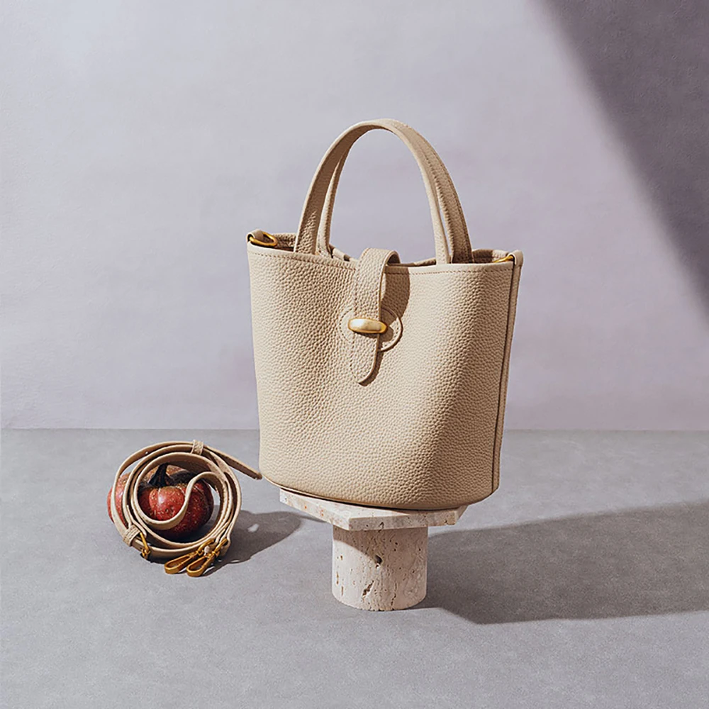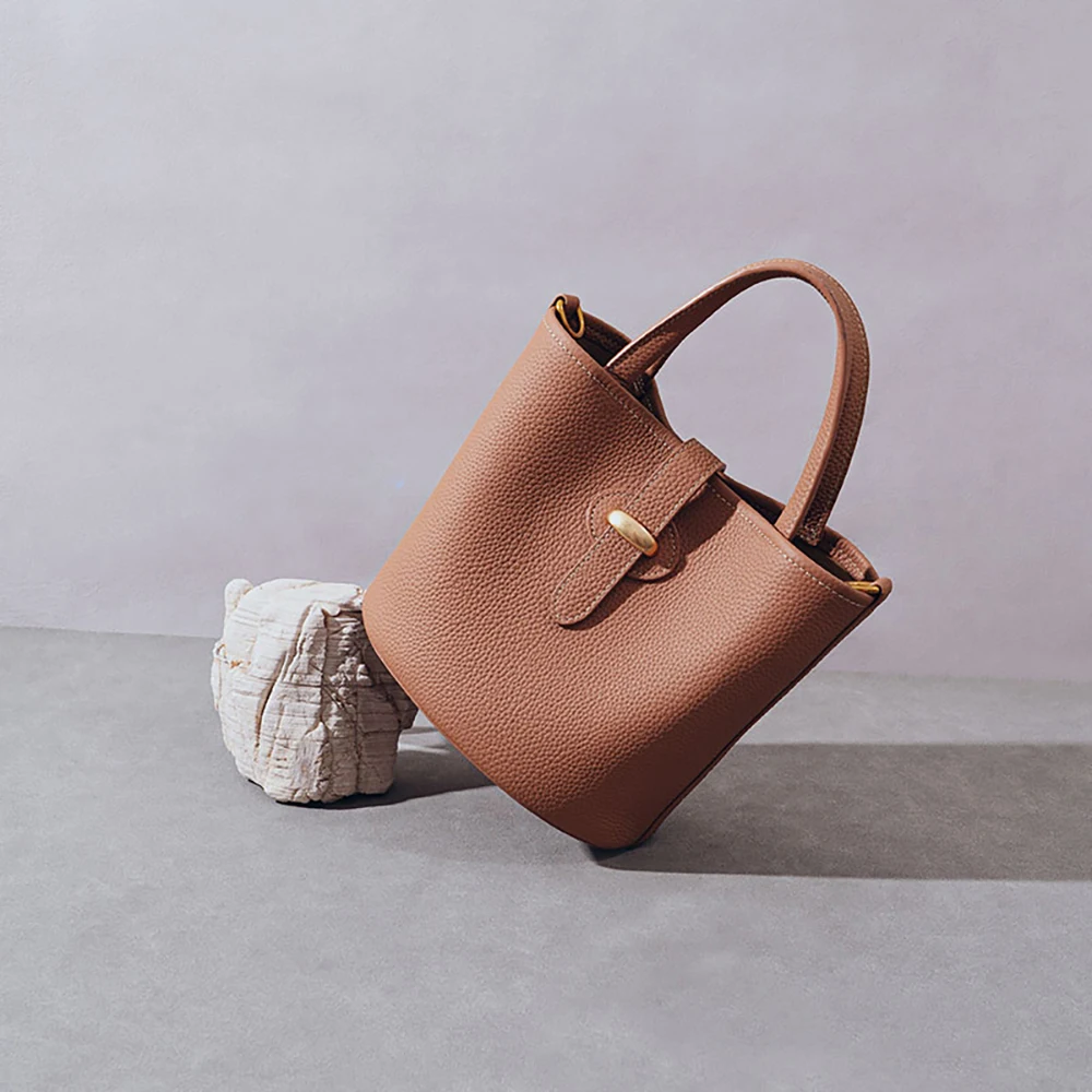 Designer Vintage Popular Ladies Women Crossbody Shoulder Hand Bags Fashion Casual Large Capacity Cowhide Leather Bucket Bag 2026