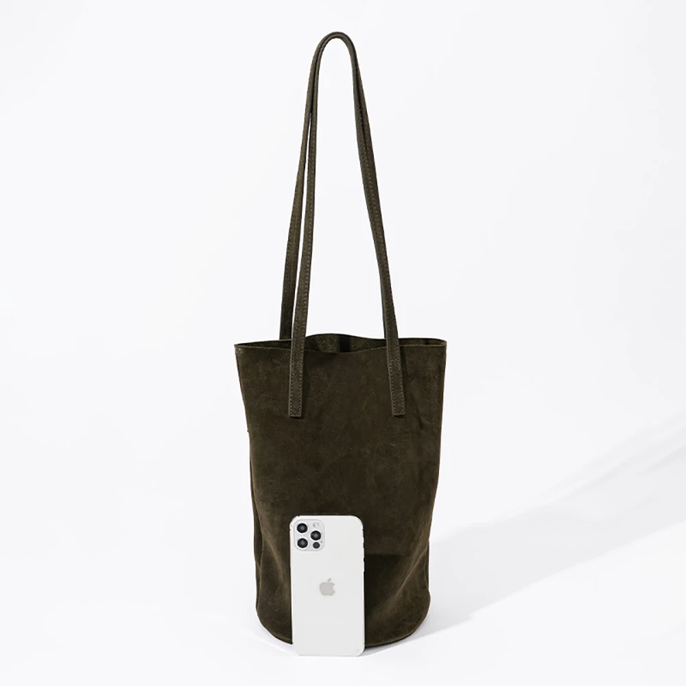 Fashion Casual Head Layer Cowhide Texture Women's Handbag with Autumn and Winter Women Bucket Bag