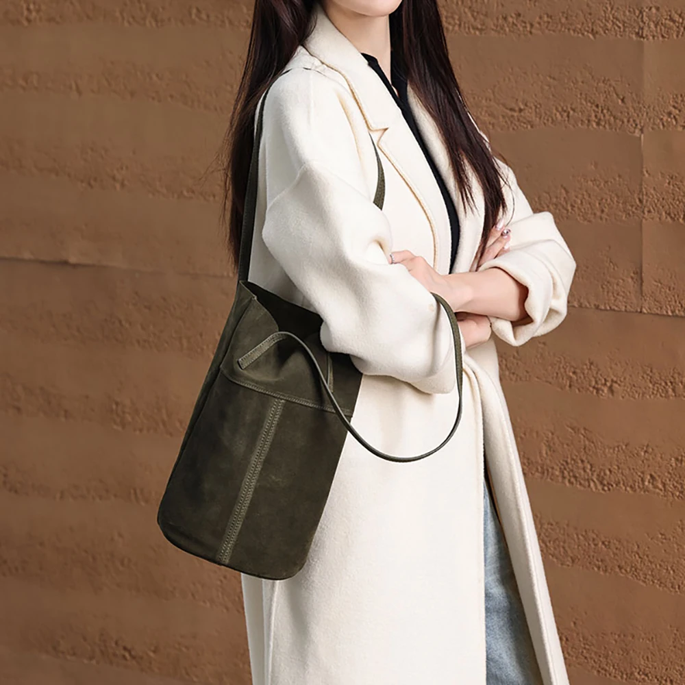 Designer Vintage Popular Ladies Women Crossbody Shoulder Hand Bags Fashion Casual Large Capacity Cowhide Leather Bucket Bag 2026