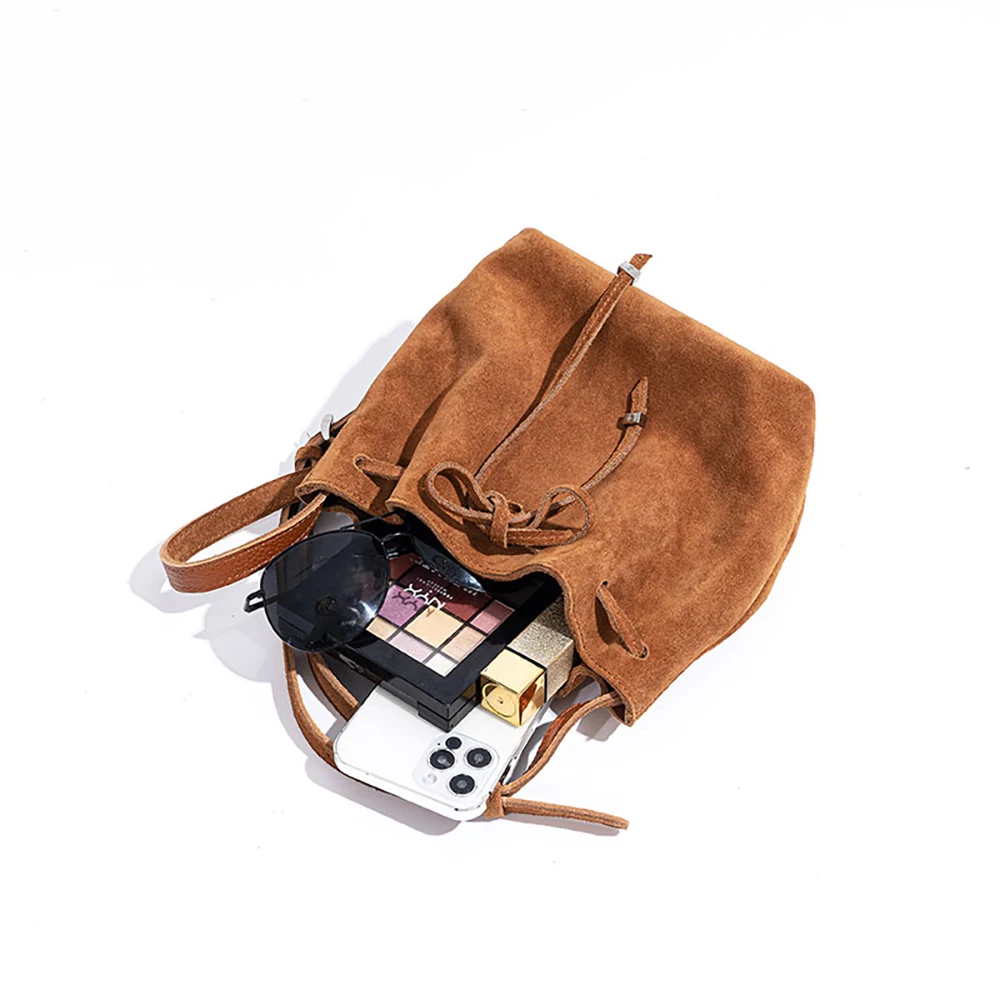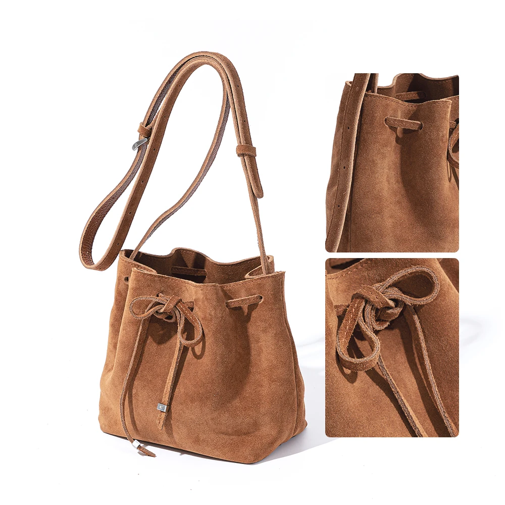 New Style Drawstring Retro Genuine Leather With Bow Design Shoulder Bag for Women Messenger Bag