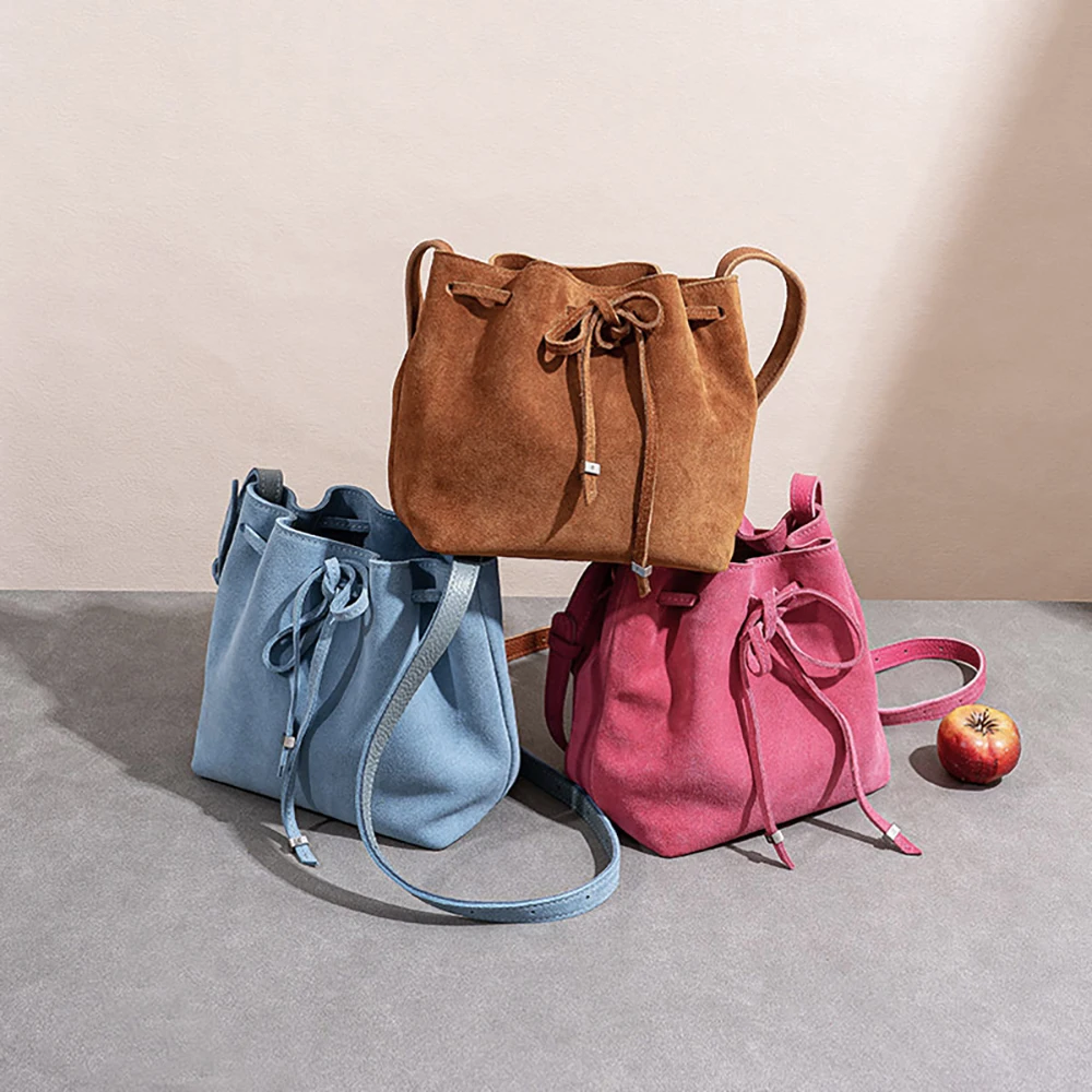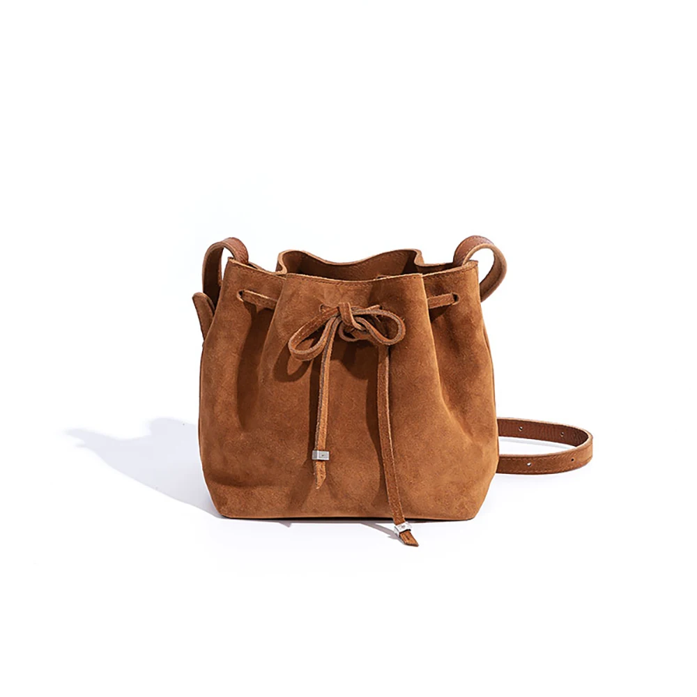 2026 New Designer Vegan Leather Suede Soft Bucket Bag for Lady 2022 Simple Retro Long Strap Shoulder Crossbody