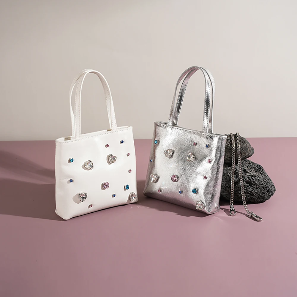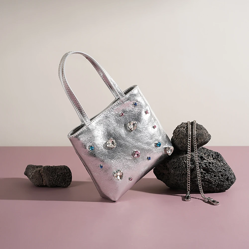 Shiny Diamond Genuine Leather Women Shoulder Bag Colorful Rhinestone Real Leather Fashion Women Handbags