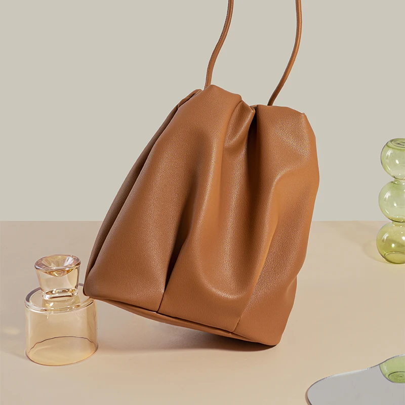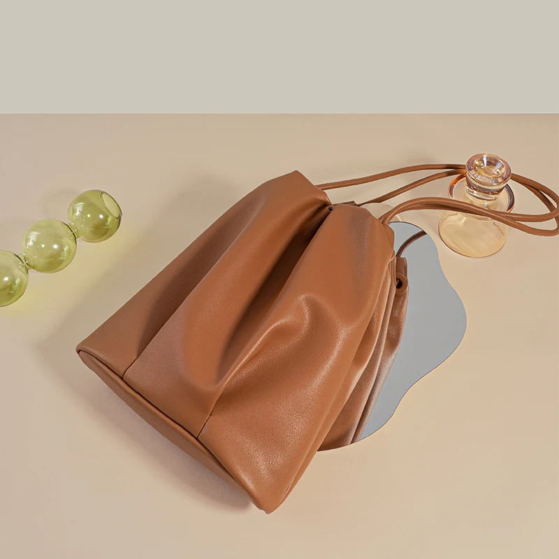 Designer Vintage Popular Ladies Women Crossbody Shoulder Hand Bags Fashion Casual Large Capacity Cowhide Leather Bucket Bag 2026