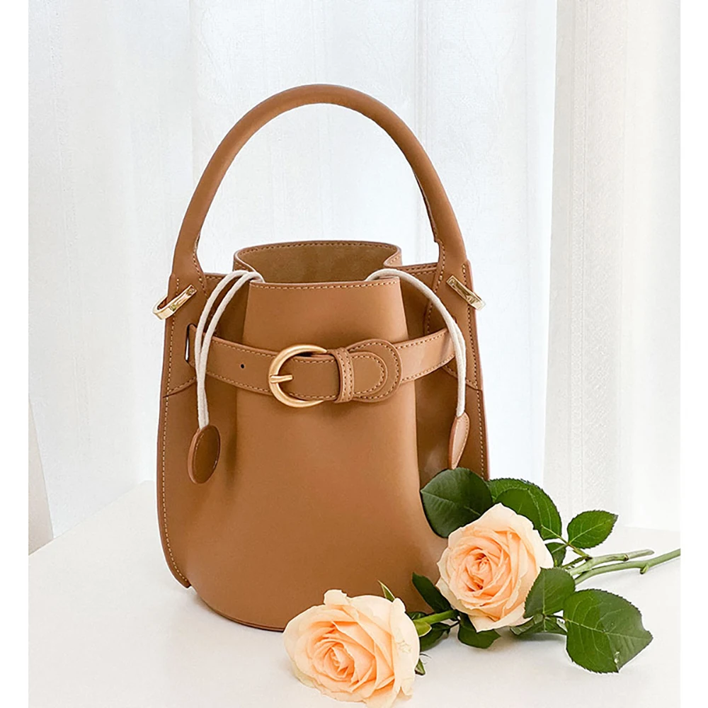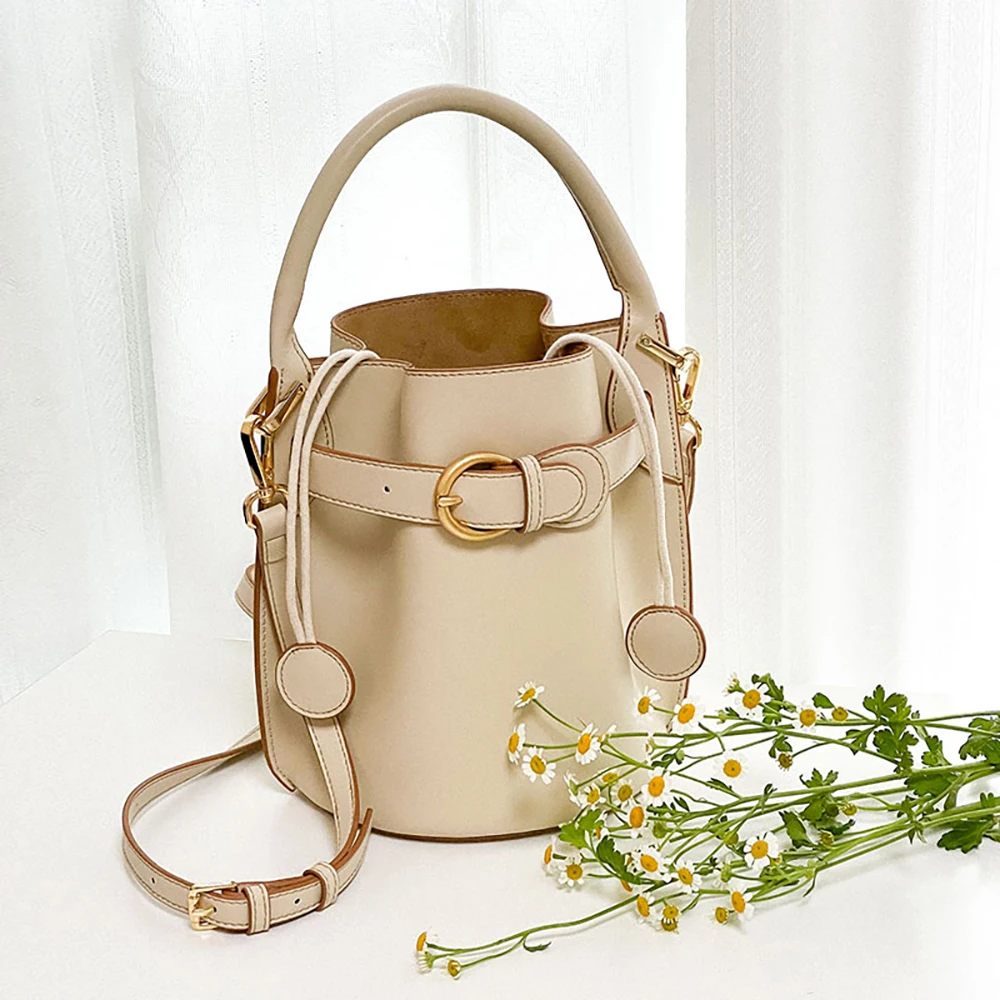 Designer Vintage Popular Ladies Women Crossbody Shoulder Hand Bags Fashion Casual Large Capacity Cowhide Leather Bucket Bag 2026