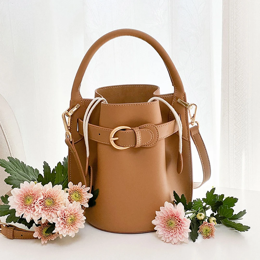 Designer Vintage Popular Ladies Women Crossbody Shoulder Hand Bags Fashion Casual Large Capacity Cowhide Leather Bucket Bag 2026