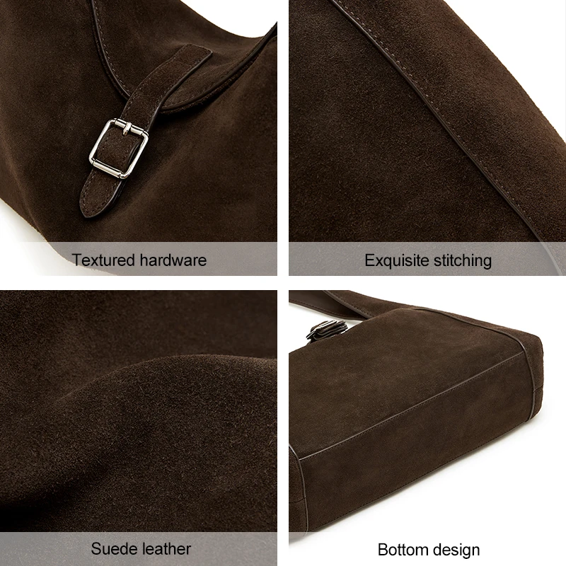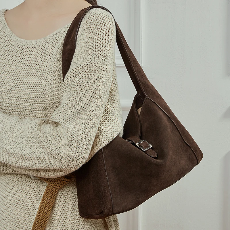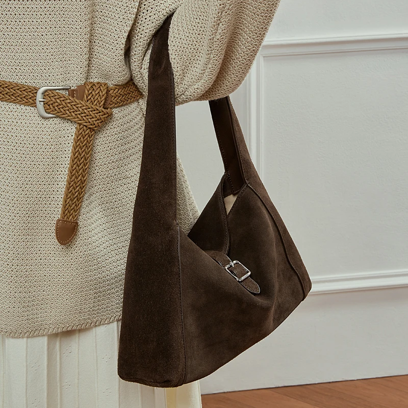 Suede Leather Casual Fashion Leather Bags Women's Retro Hobos Underarm Shoulder Bags Large Capacity Soft Hook & Loop Closure