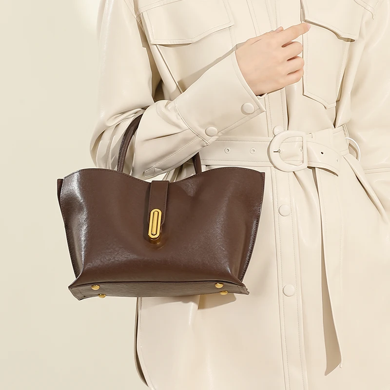 Designer Vintage Popular Ladies Women Crossbody Shoulder Hand Bags Fashion Casual Large Capacity Cowhide Leather Bucket Bag 2026
