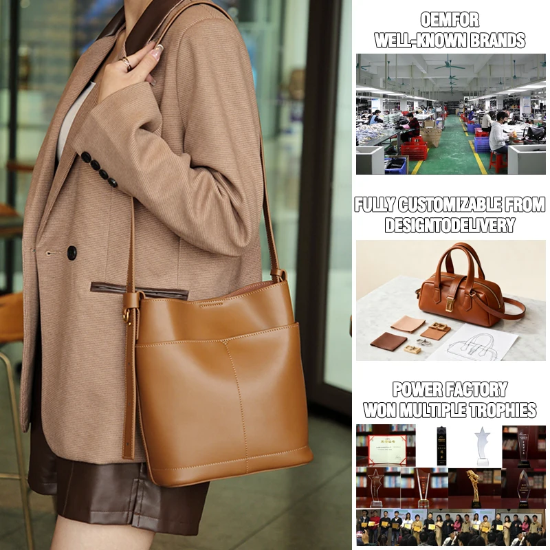 Designer Vintage Popular Ladies Women Crossbody Shoulder Hand Bags Fashion Casual Large Capacity Cowhide Leather Bucket Bag 2026