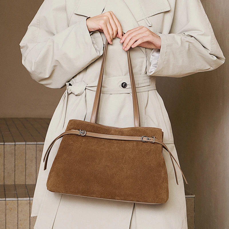 Women's Leather Shoulder Tote Bag Vintage Fashion Lady Suede Handbags Style Single Strap Winter Portable Wholesale Customization