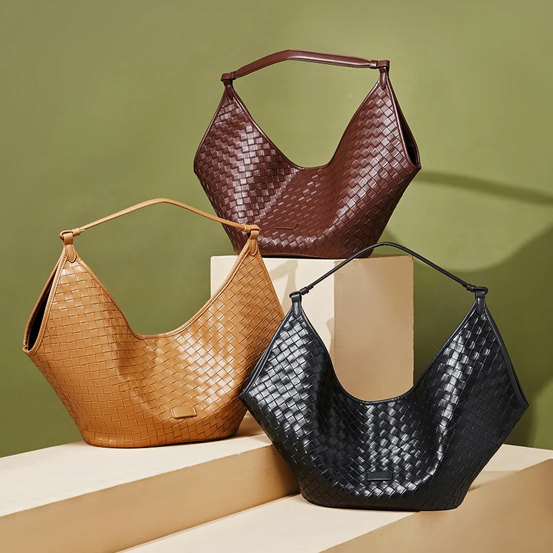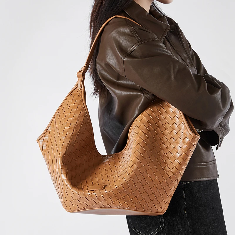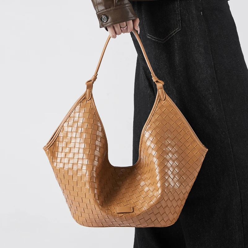 Wholesale Custom 2026 Women's Retro Genuine Leather Woven Bag Ladies Large Capacity Shoulder Bags Luxury Handbags