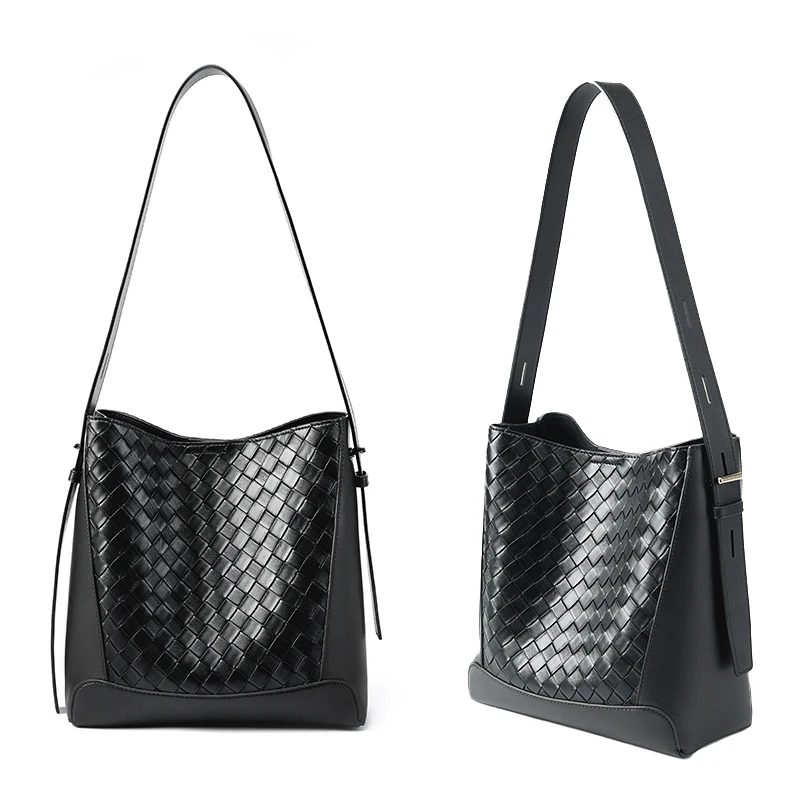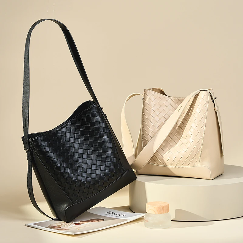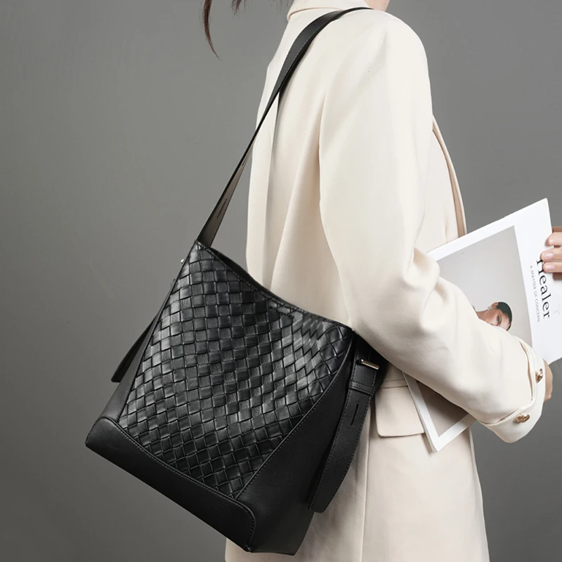 Luxury Women's Genuine Leather Crossbody Bucket Bag Designer Woven Single Strap Shoulder Tote Large Handbag for Summer