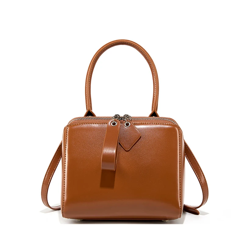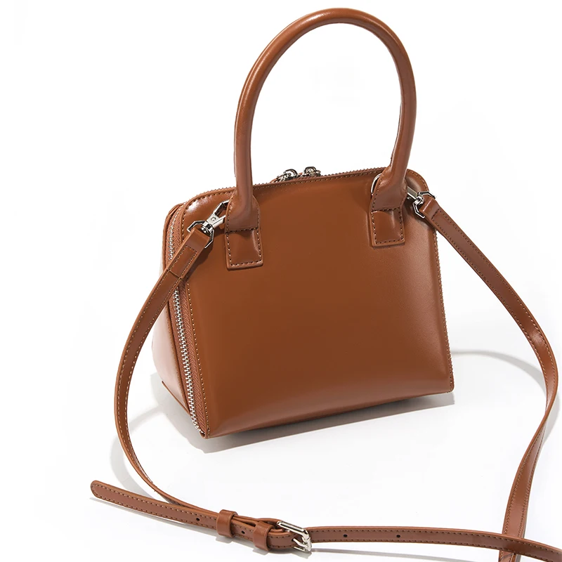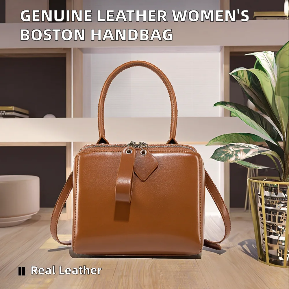Wholesale Casual Women's Clutch Boston Bag Style Genuine Cowhide Leather Zipper Waterproof Fashion Chain Strap Solid Color