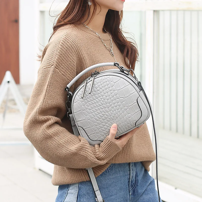Wholesale Custom Women's Leather Shoulder Crossbody Bag Handbags Bucket Tote Zipper Ladies Messenger Saddle Lunch Box Bag