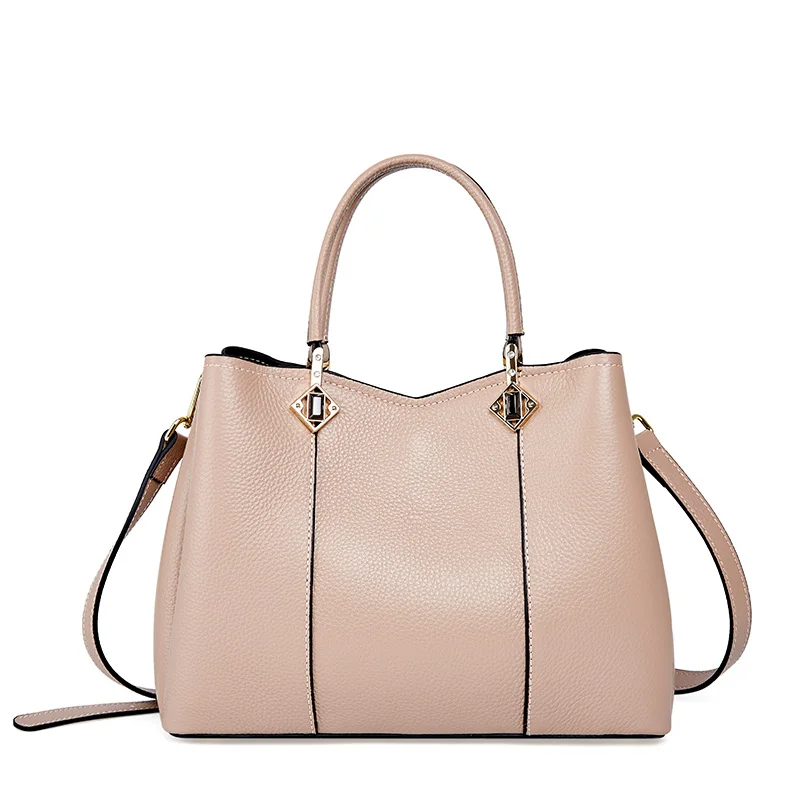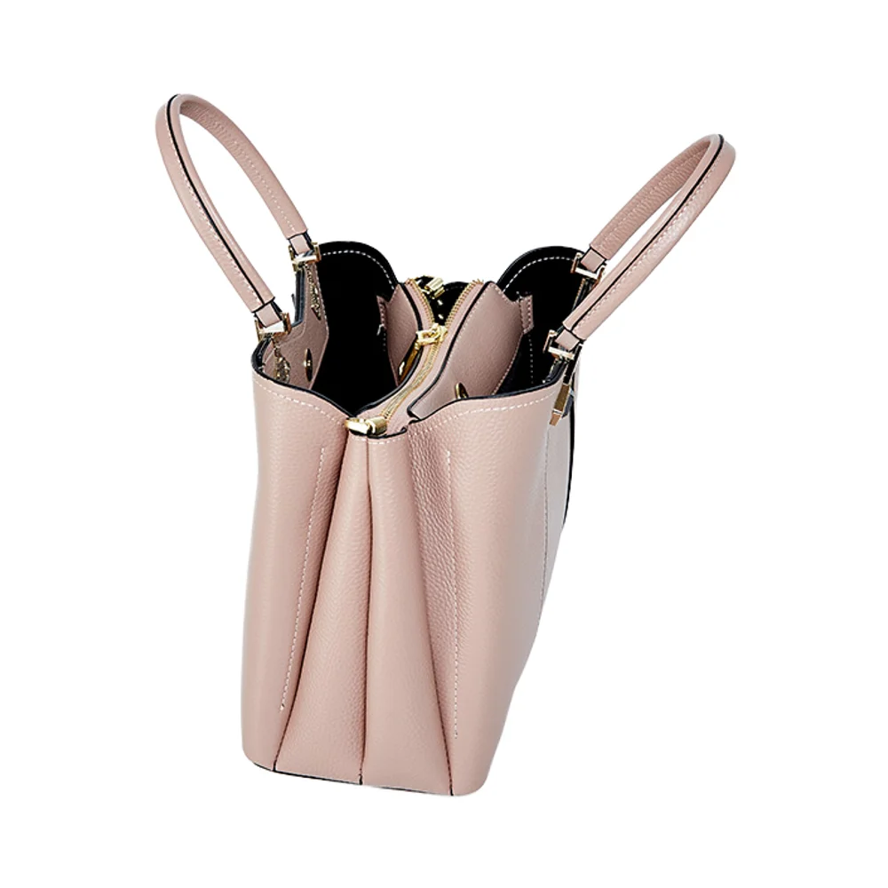 Customized Wholesale Women's Fashionable High-quality Genuine Leather Zipper Waterproof Handbag 2-2.9L Capacity Polyester Lining