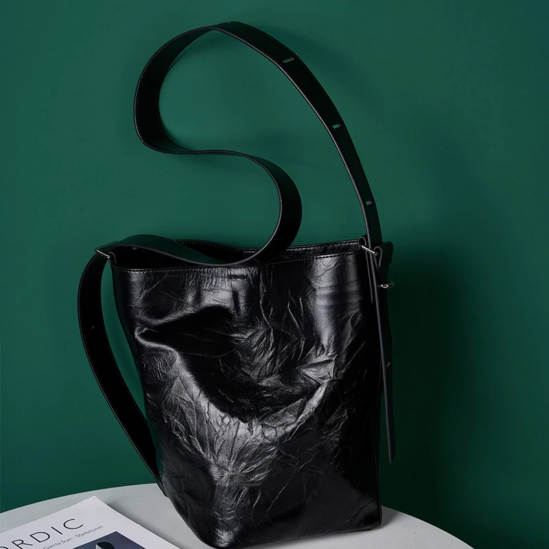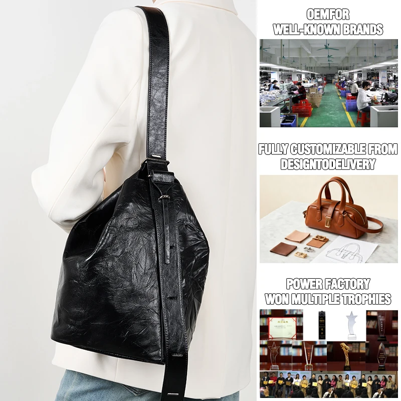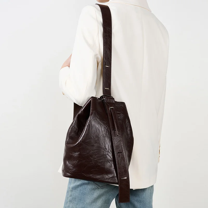Designer Vintage Popular Ladies Women Crossbody Shoulder Hand Bags Fashion Casual Large Capacity Cowhide Leather Bucket Bag 2026