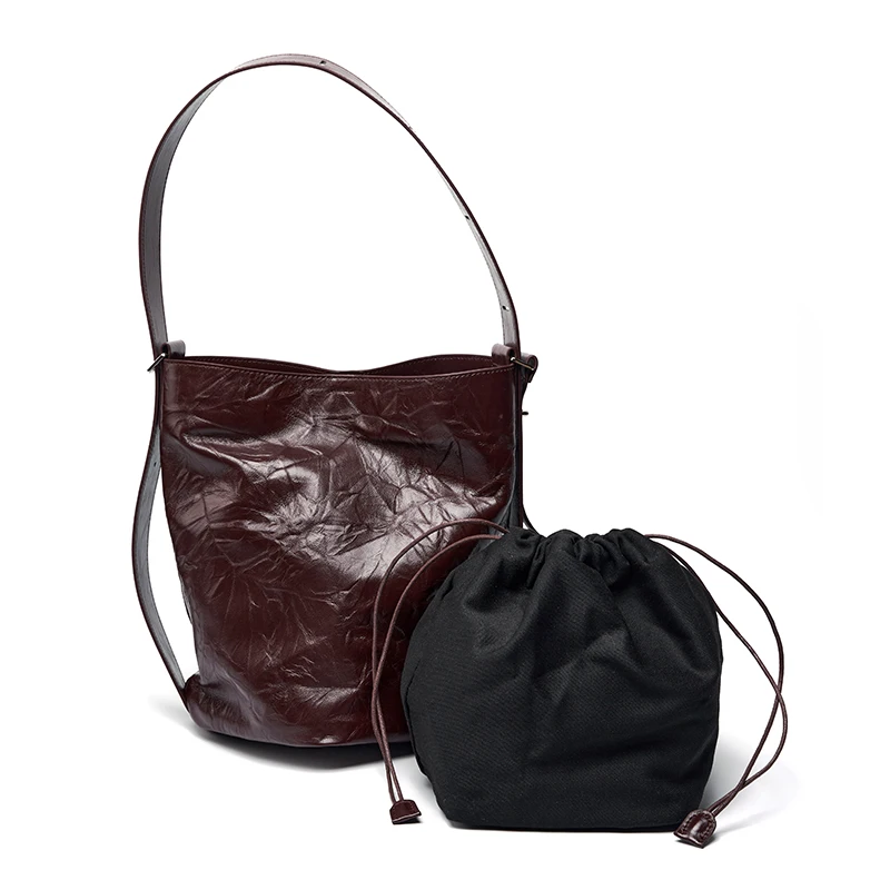 Factory Wholesale Vintage Women's Leather Shoulder Bags High-quality Cowhide Crossbody Bag for Ladies Luxury and Lazy Bucket Bag