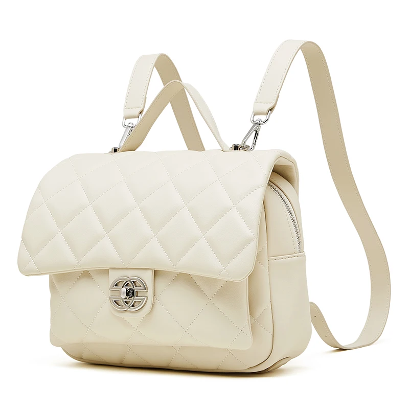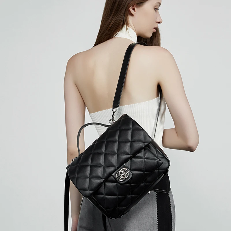 Wholesale Custom Retro Women's Leather Diamond Backpack Elegant and High-quality Diamond Grid Shoulder Bag for Ladies Book Bag