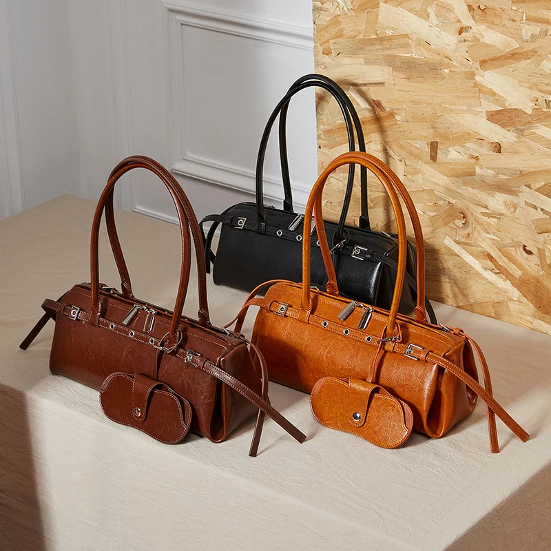 Wholesale Custom logo Retro Women's Genuine Leather Handbags Simple High-quality Shoulder Bag for Ladies Minimalist Dropshipping