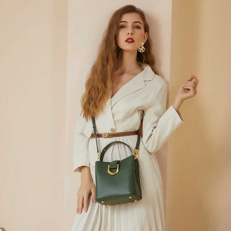 Manufacturer Wholesale Custom Women's Fashion Retro Leather Waterproof Shoulder Bag OEM/ODM High-quality Cowhide Bucket Bag 3L+