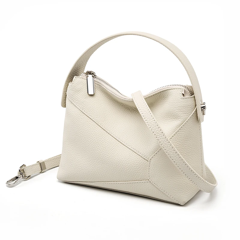 2026 Retro Style Genuine Leather Women's Crossbody Mini Pillow Bag Luxury Handbag with Zipper Closure Girls Geometric Designer