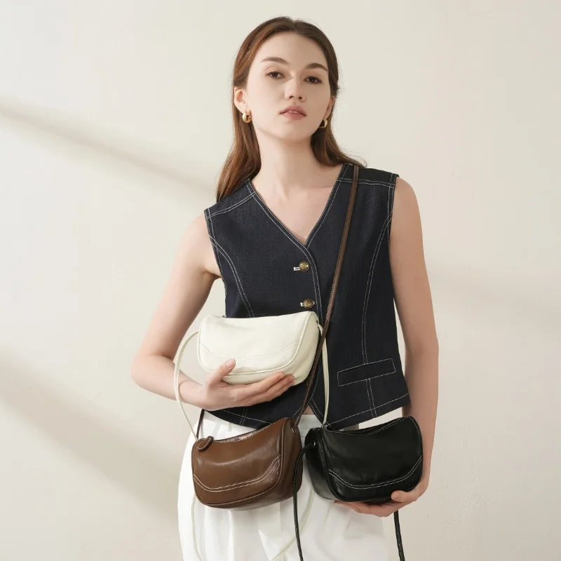 2026 Retro Style Top Grade Genuine Leather Mobile Phone Cross Bag Luxury Side Bags for Ladies Polyester Lined MIni Bag