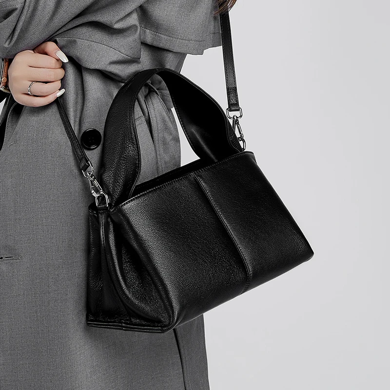 Designer Vintage Popular Ladies Women Crossbody Shoulder Hand Bags Fashion Casual Large Capacity Cowhide Leather Bucket Bag 2026