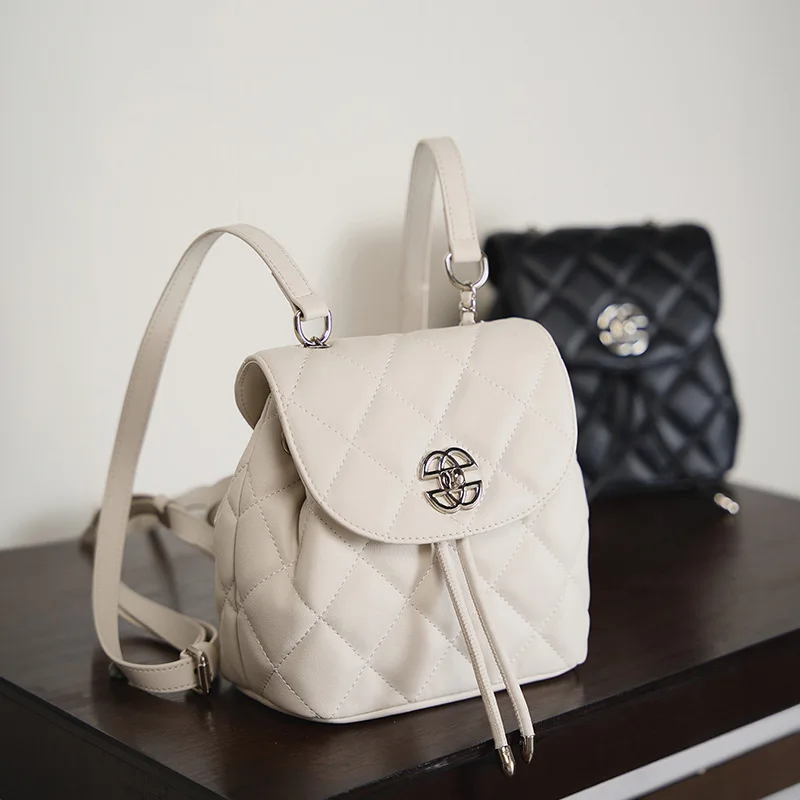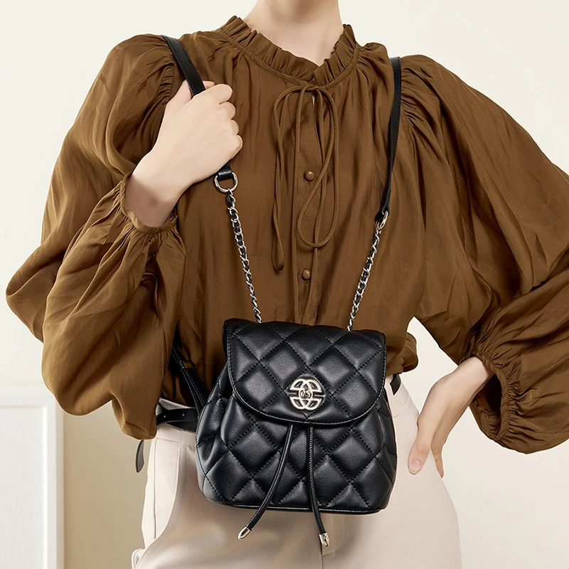 Women's Vintage High Quality Genuine Leather Lightweight Foldable Backpack Luxury School Bag String Closure Detachable Strap 3L+