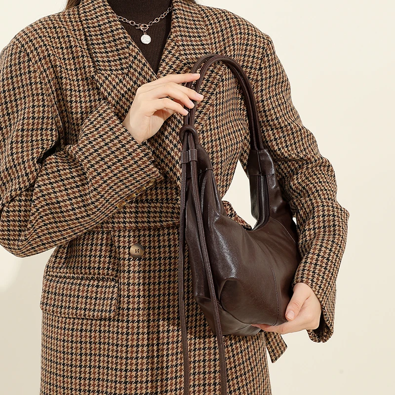 Designer Vintage Popular Ladies Women Crossbody Shoulder Hand Bags Fashion Casual Large Capacity Cowhide Leather Bucket Bag 2026