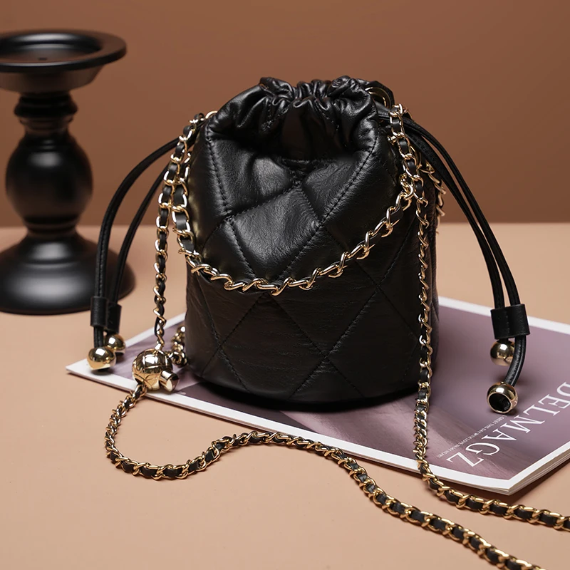 Designer Vintage Popular Ladies Women Crossbody Shoulder Hand Bags Fashion Casual Large Capacity Cowhide Leather Bucket Bag 2026