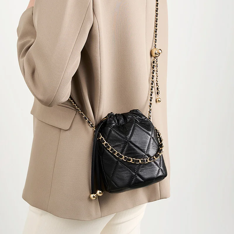 Luxury Diamond Lattice Genuine Leather Crossbody Bag for Women Waterproof & Light Weight 2-2.9L Capacity Vintage Fashion Design