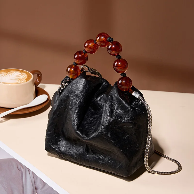 Designer Vintage Popular Ladies Women Crossbody Shoulder Hand Bags Fashion Casual Large Capacity Cowhide Leather Bucket Bag 2026