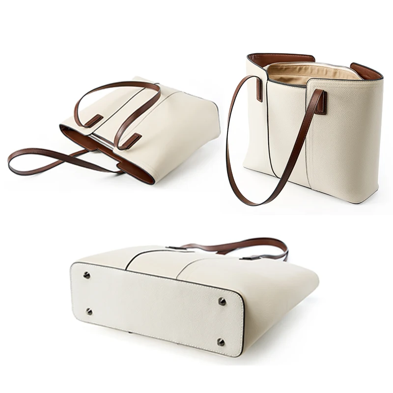 Wholesale Custom Logo Retro Women's Genuine Leather Waterproof Tote Bag Zipper Closure High Quality Shoulder Handbag for Bag