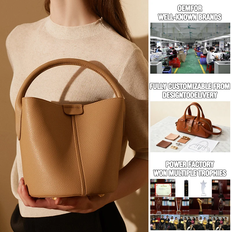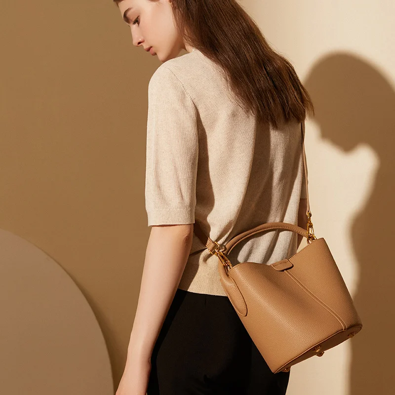 Designer Vintage Popular Ladies Women Crossbody Shoulder Hand Bags Fashion Casual Large Capacity Cowhide Leather Bucket Bag 2026