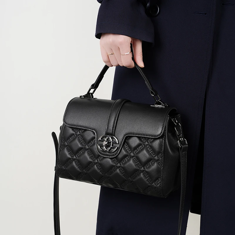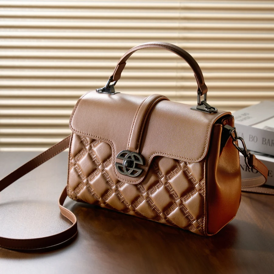 Wholesale Custom Retro Design Women's Genuine Leather Diamond Square Waterproof 3L+ Capacity Luxury High-quality