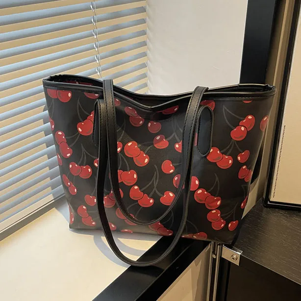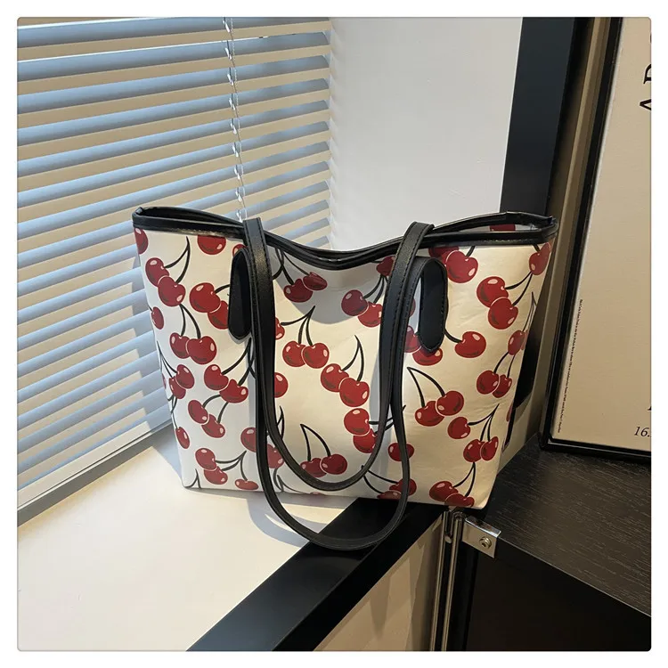 Cherry Design 2026 Women's Large Capacity Tote Bag New College Student Commute Single-Shoulder Bag with Hand-Held for Girls