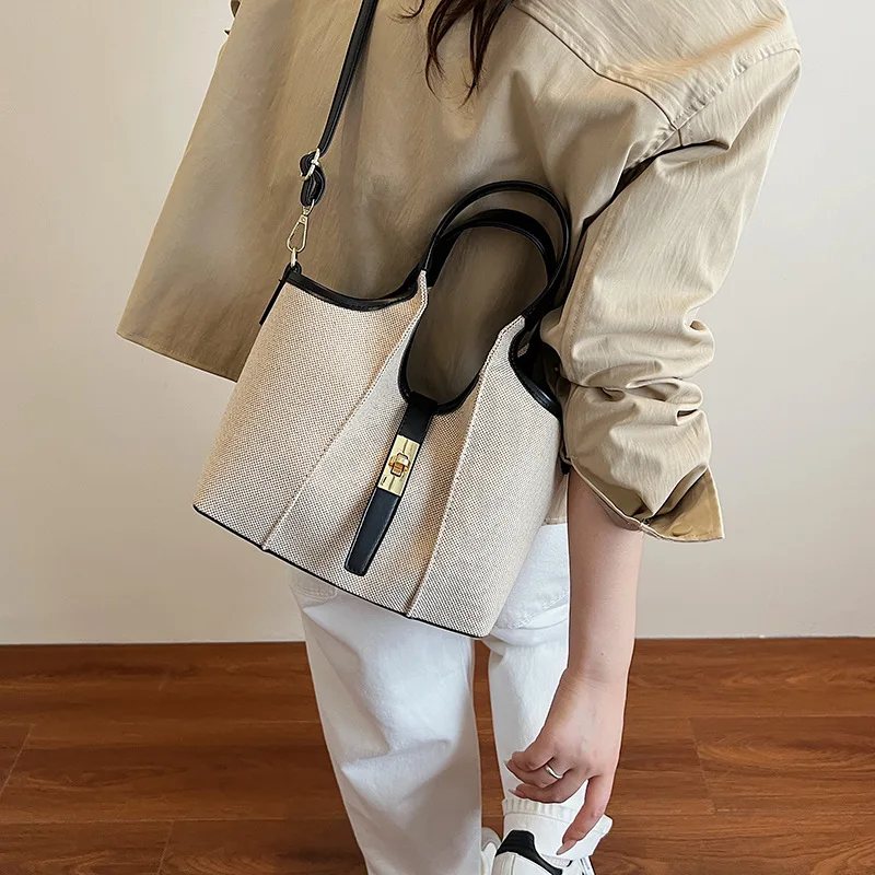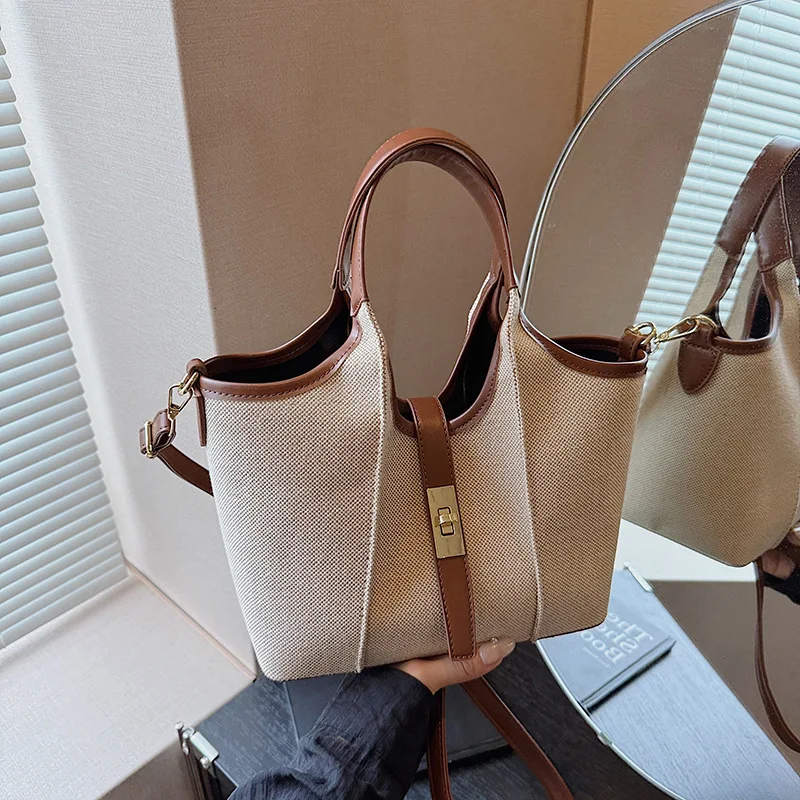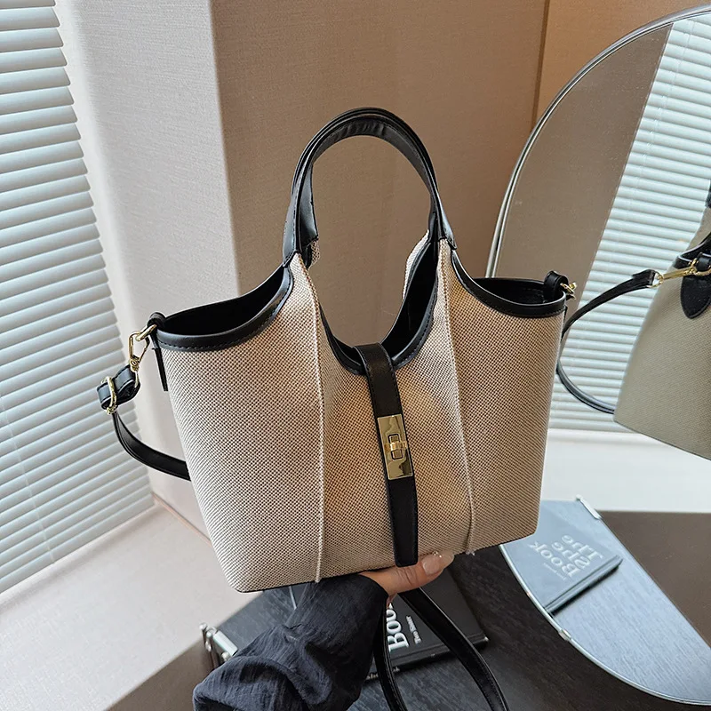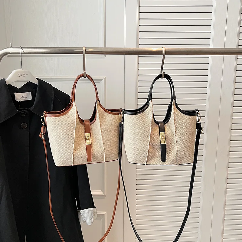 Stylish 2 in 1 Set Canvas Tote Bags Women's Basket Bag Large Capacity Shoulder Bag