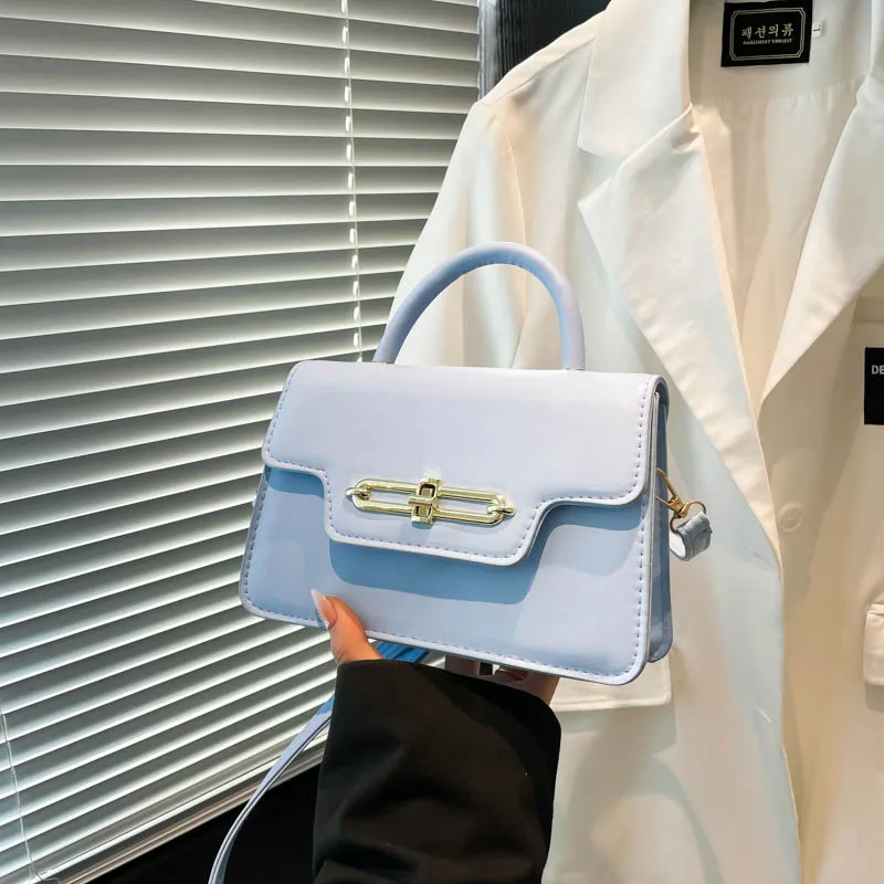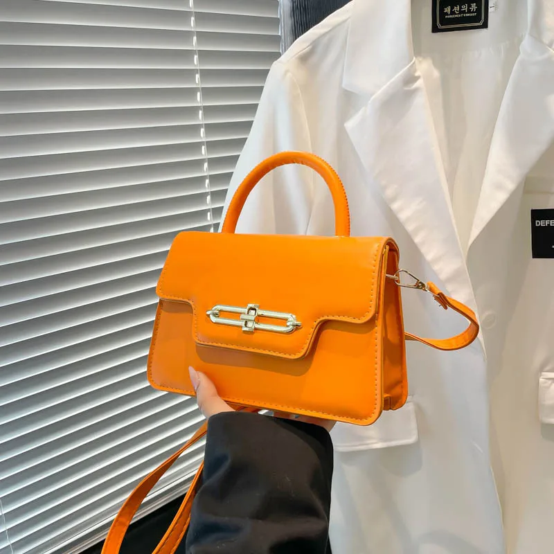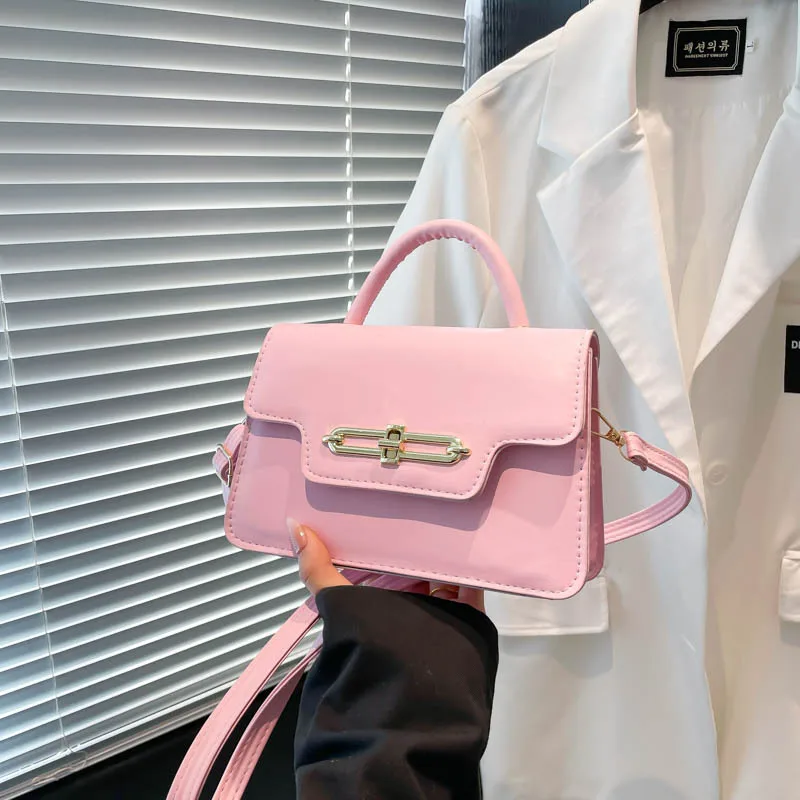 2026 New Candy Color PU Leather Woman's Handbags with Lock Fashion Square Bags for Girls