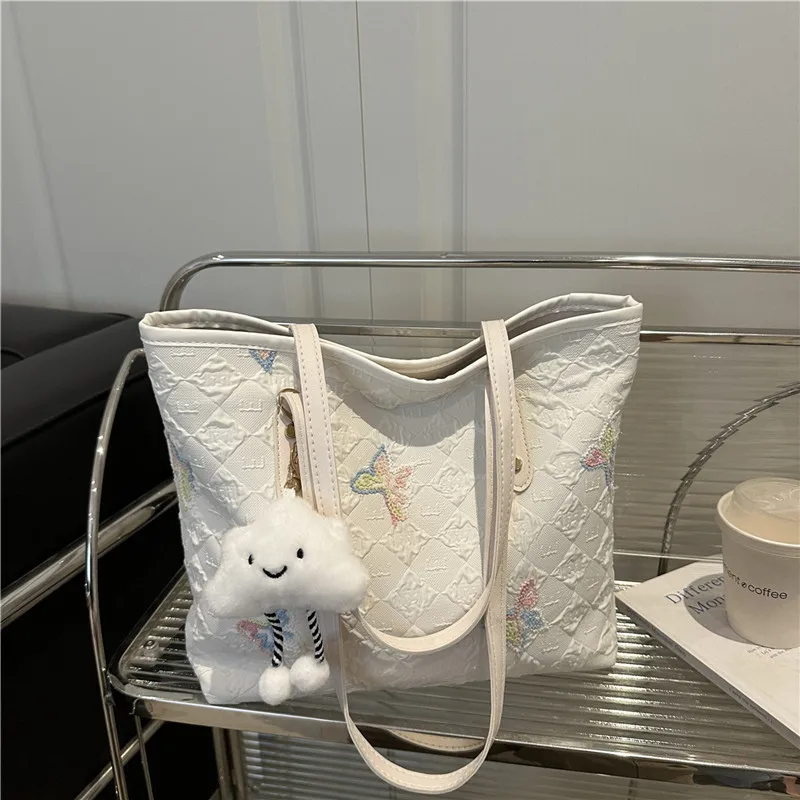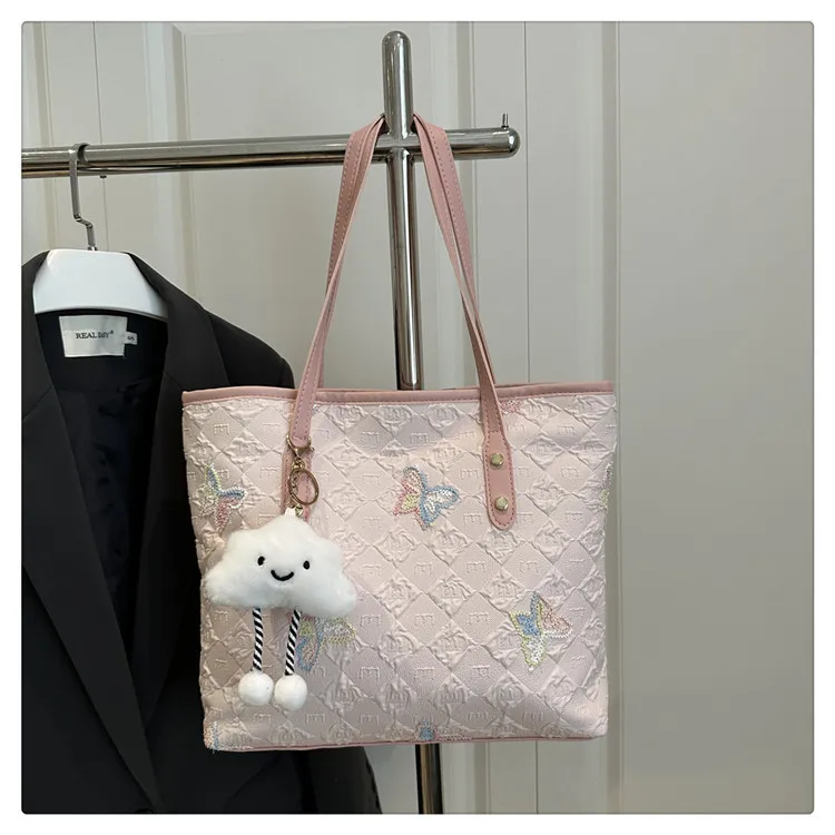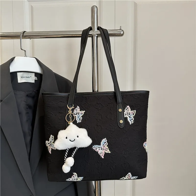 2026 Butterfly Print Tote Bag With Cloud Pendant Large Capacity Lady's Handbags Woman's Shoulder Bag for Shopping