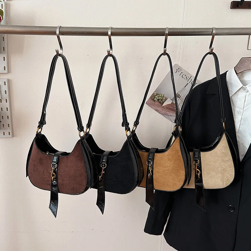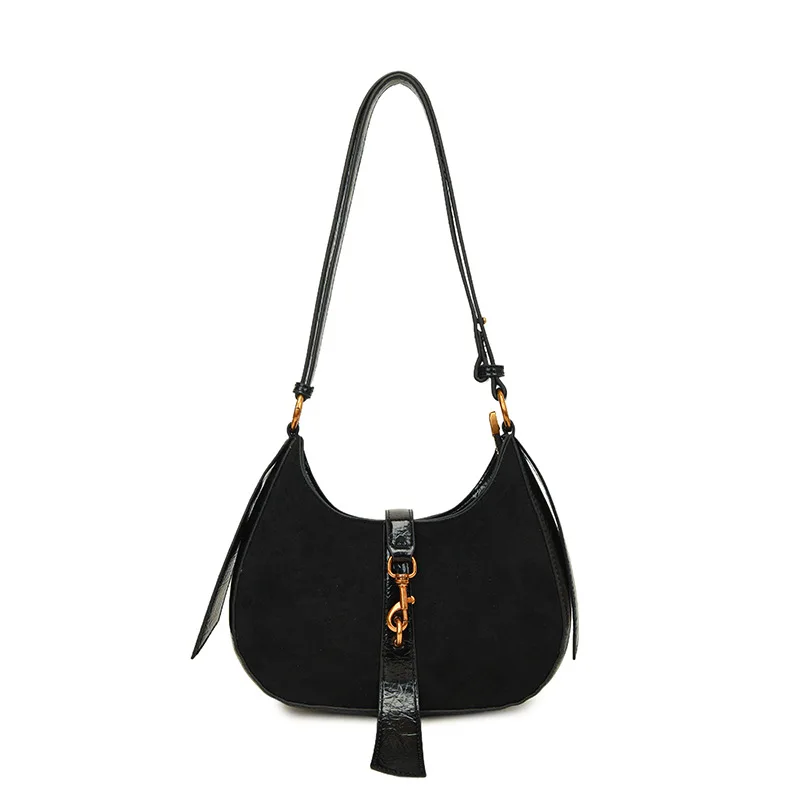 New Classic Versatile Women's Stylish Crossbody Hand Bag Lock Chain Trendy Crescent Pillow Design with Zip Closure Shoulder Bags