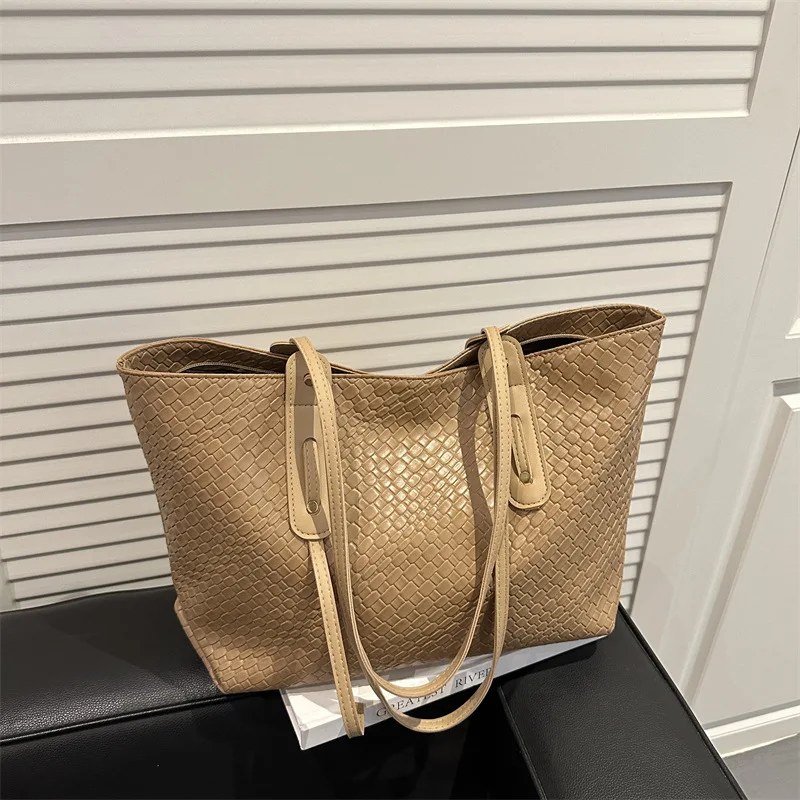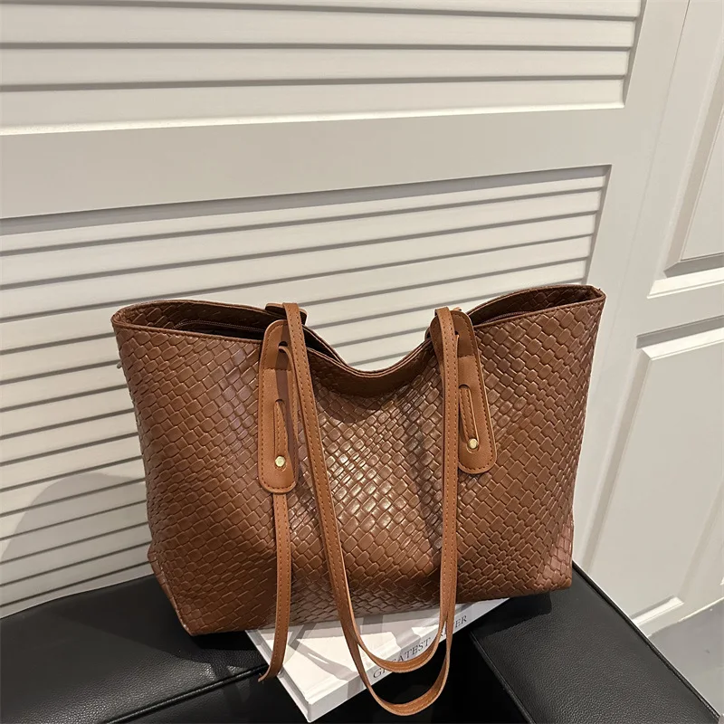 Large Capacity Woven Bag for Women 2026 New Autumn Retro Shoulder Bag PU Leather Tote Bag Zipper Handbag for Women