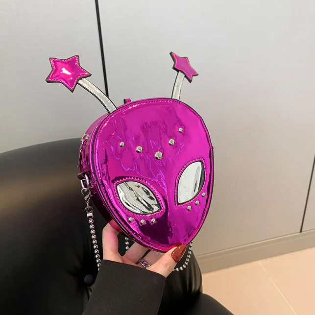 New Trendy Personalized Christmas Shiny Fashion Handbags for Women Chain Shoulder Bag Skull Purses Girls Party Gothic Bag
