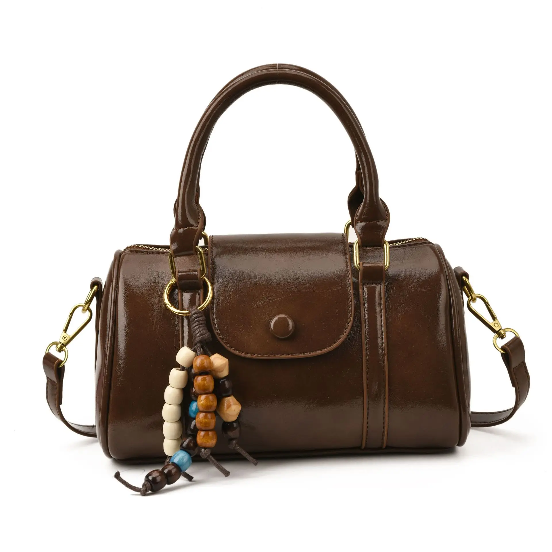 Classic Luxury Boston Design Women's Handbags Vegan Leather Elegant Ladies Shoulder Bags With Pendant
