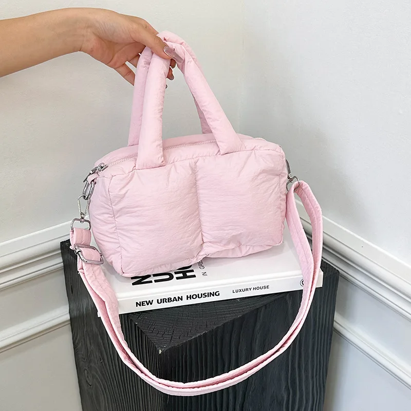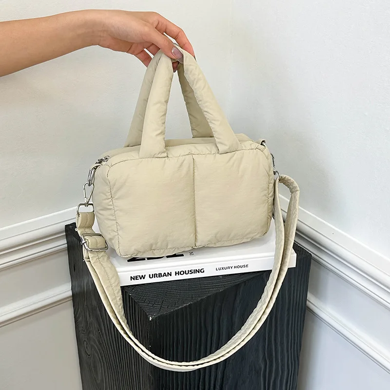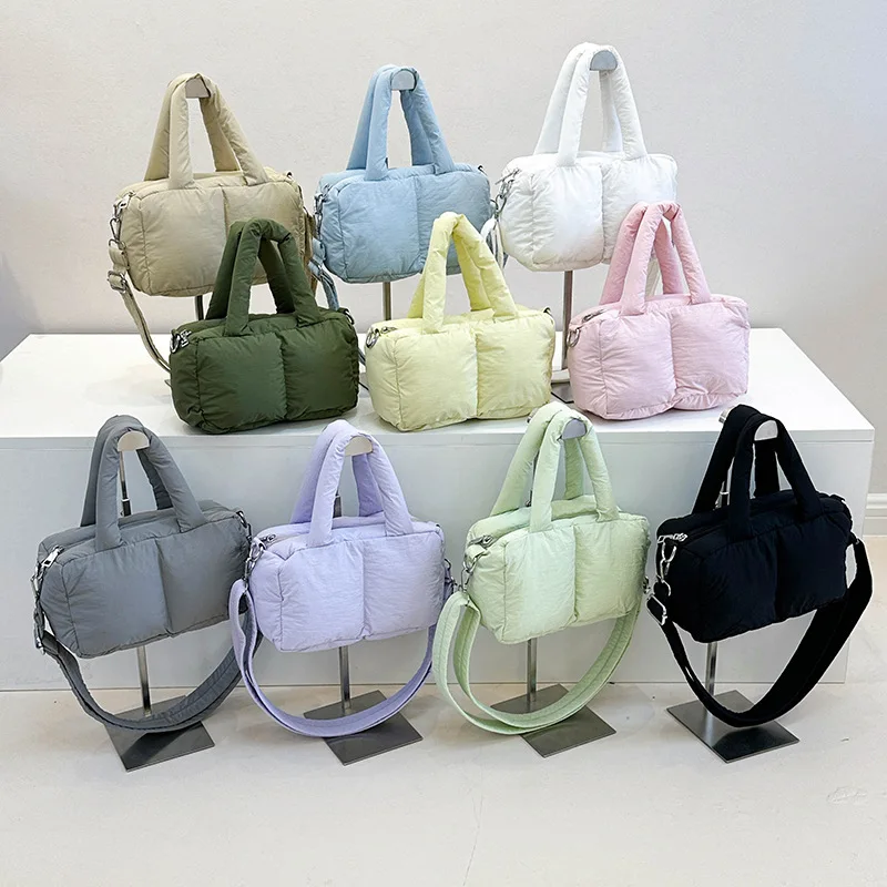 Custom Logo Luxury Women's Quilted Puff Padded Handbags Ladies Nylon Waterproof Resistant Shoulder Strap Top Handle Bags