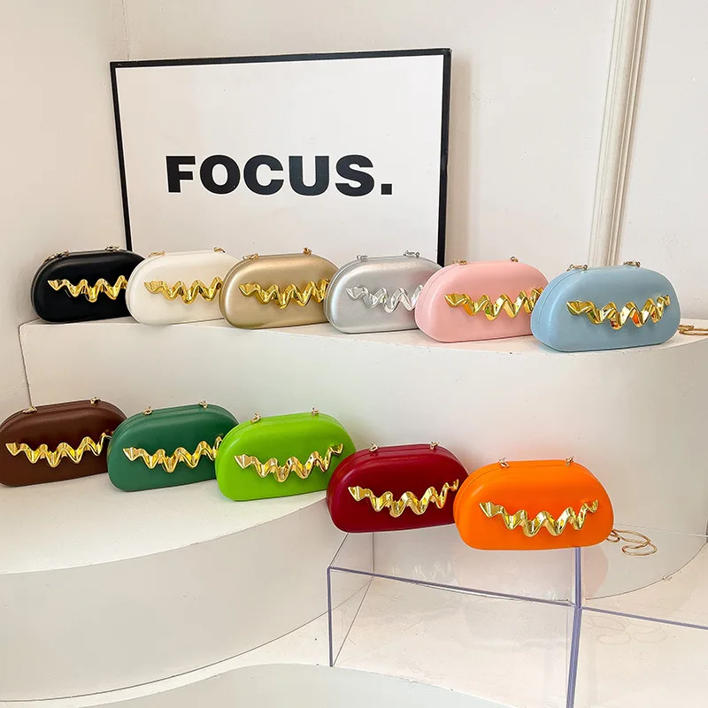 New Box Design Wave Shape Chain Shoulder Handbags for Women Ladies Evening Bags for Shopping