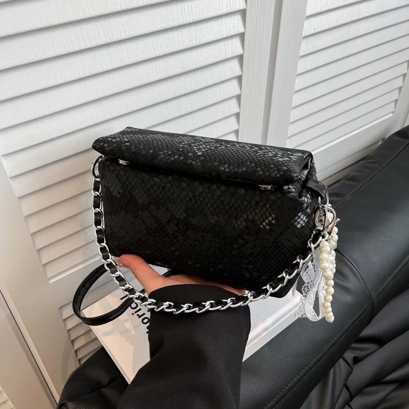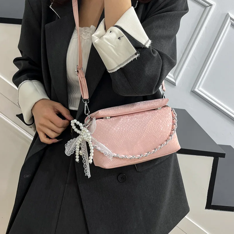 New Fashionable Box Design Hand Bag with Pearl Pendant Decoration Women's Shoulder Bags Popular Purse
