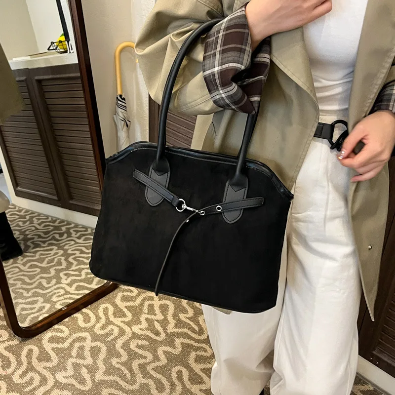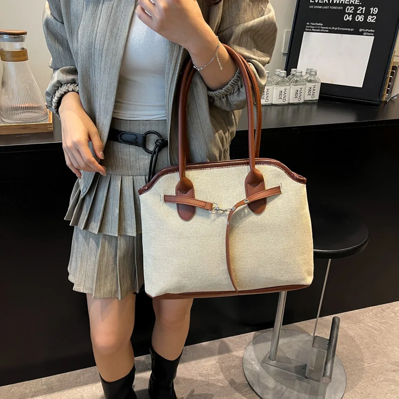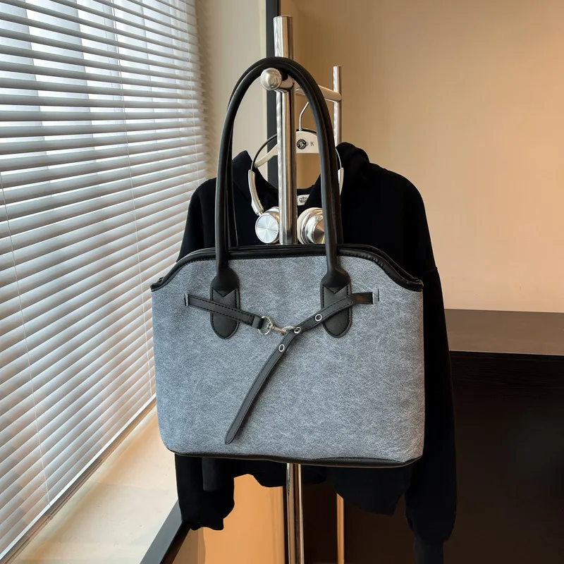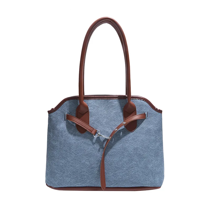 Large Capacity Ladies Designer Shoulder Bag Suede Canvas and PU Leather 3 Kinds of Different Material Handbag Totes