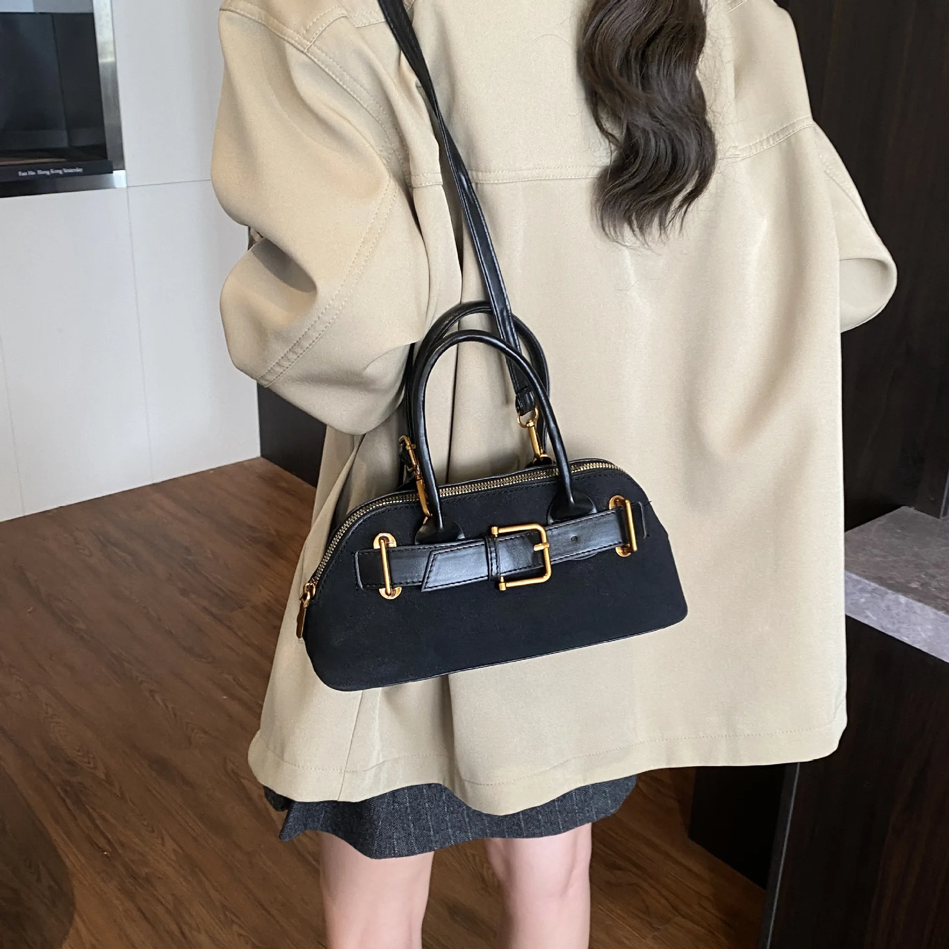 Top Handle Handbag Women Designer Shoulder Purse Vintage Small Micro Suede Tote Bag Zip Closure Bags for Lady