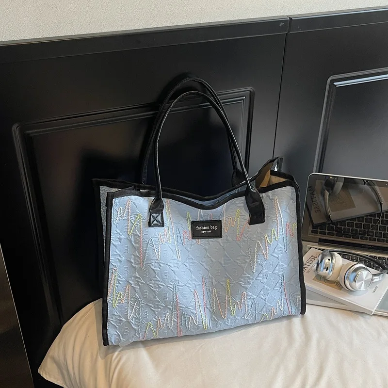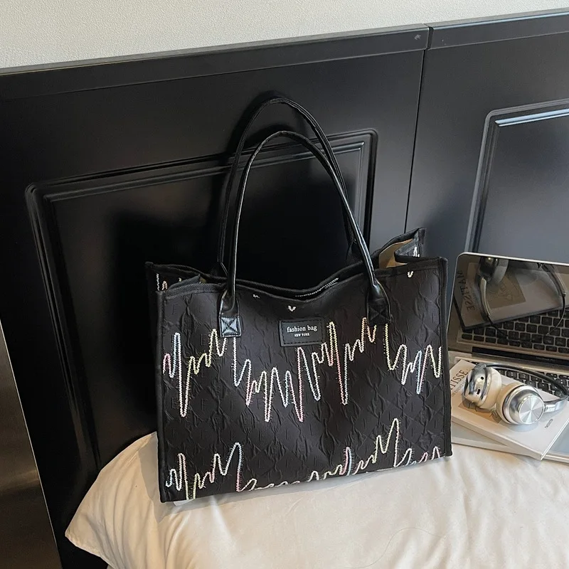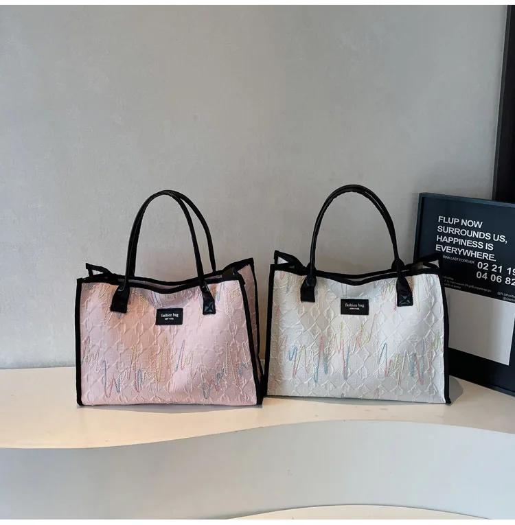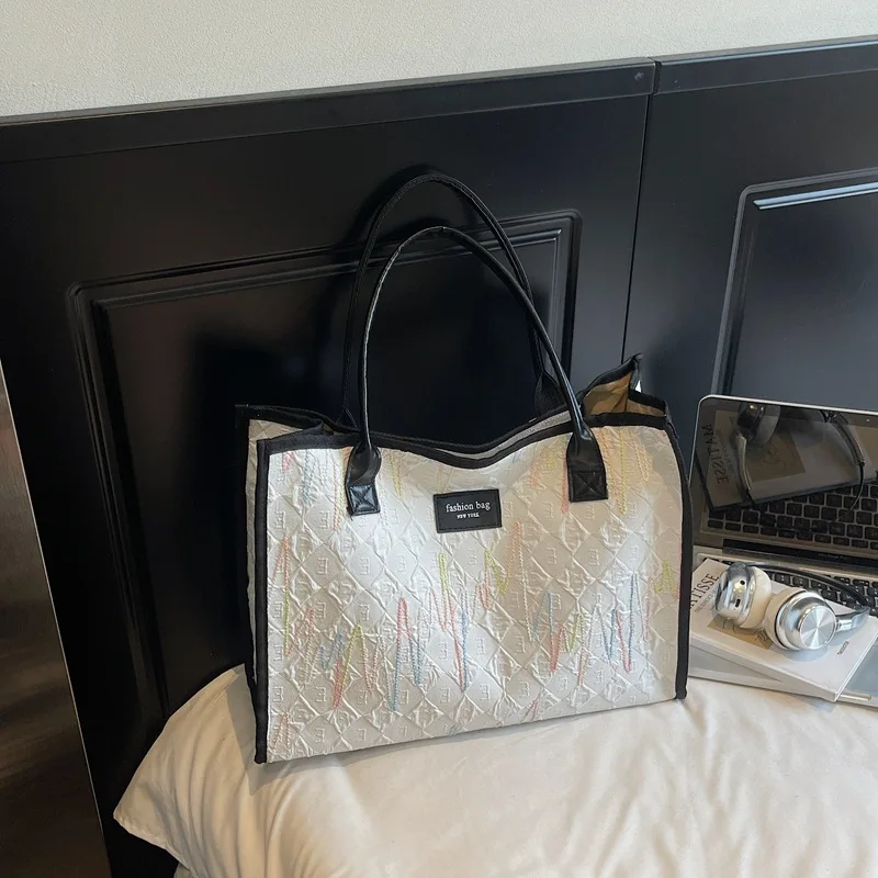 2026 Winter Large Capacity New Fashionable Canvas Bag Single Shoulder Striped Tote Bag for Women
