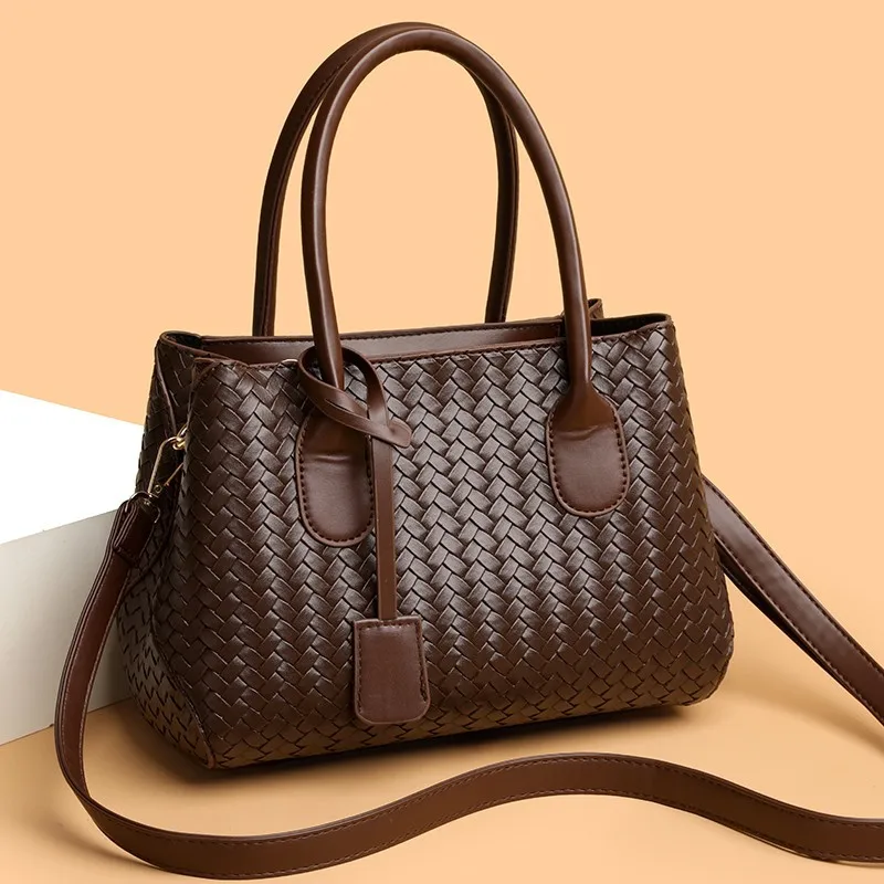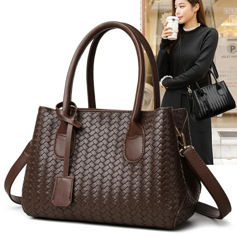 Women's Woven PU Leather Handbag Stylish Top Handle Tote with Removable Shoulder Strap Fashion Crossbody Bag