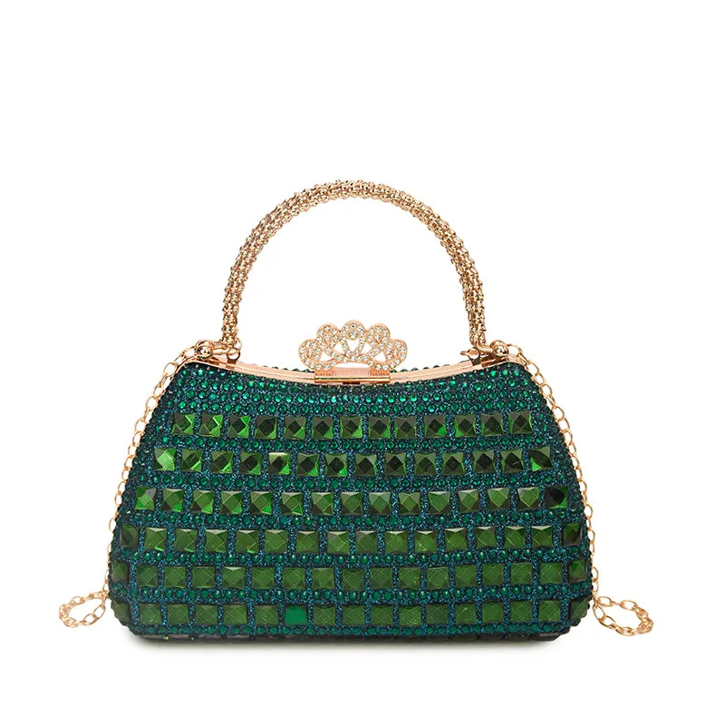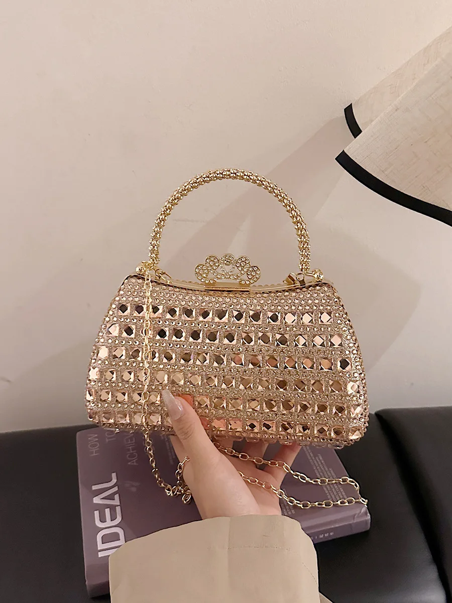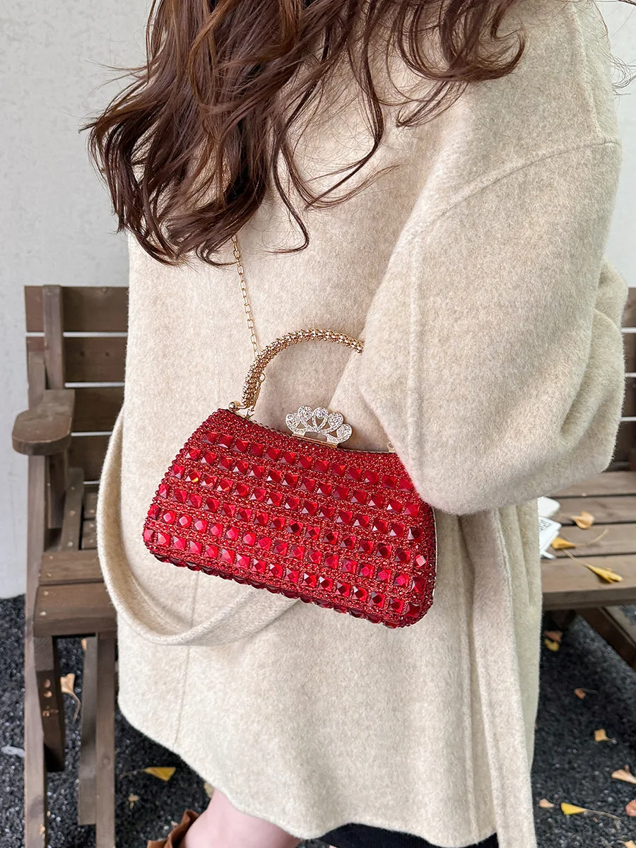 Glamorous Crystal Evening Clutch Rhinestone Studied Top Handle Purse with Detachable Chain Strap Women's Party Handbag